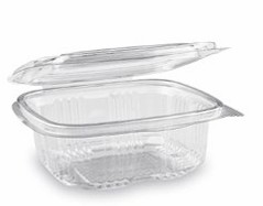 Miska hranatá rPET s víčkem, 375ml,průhledná